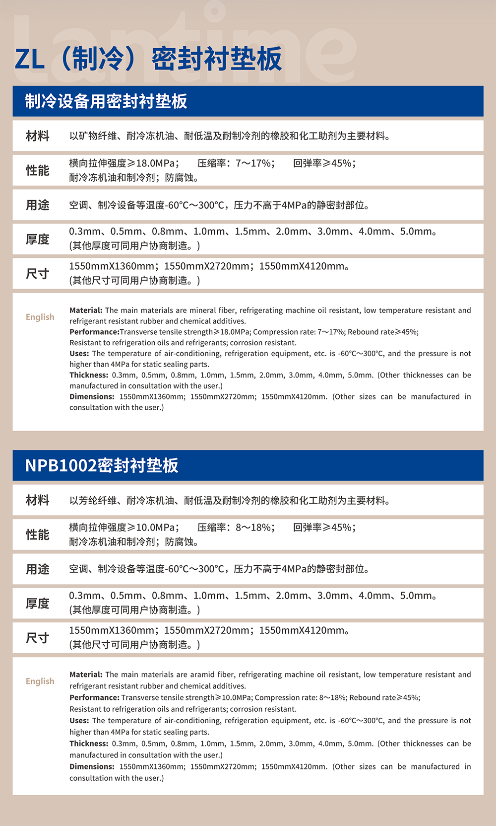 制冷密封衬垫板